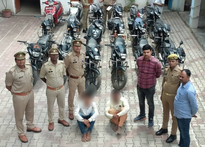 Varanasi, Uttar Pradesh: In a successful operation, the crime team of the Cantt Police Station has apprehended two interstate vehicle thieves along with 18 stolen bikes. The operation was conducted after receiving multiple complaints of bike thefts in the area. The team acted swiftly and conducted a thorough investigation, which led to the identification and subsequent arrest of the two accused. Along with the 18 stolen bikes, two interstate vehicles used in the commission of the crimes were also recovered. The accused have been booked under relevant sections of the Indian Penal Code and further investigation is underway. The Cantt Police Station has been lauded for their prompt action and effective investigation in solving the case.