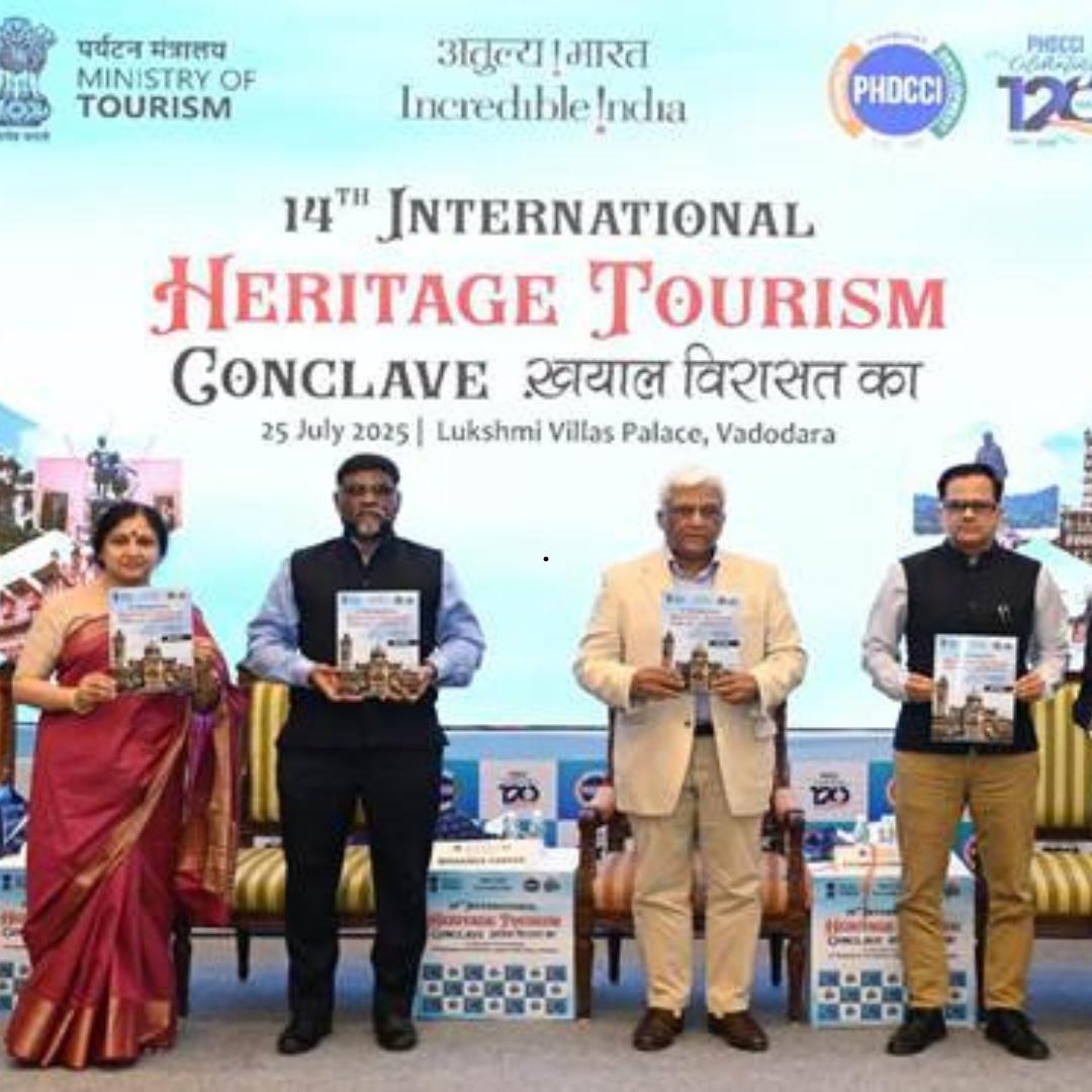 Against the regal setting of Vadodara’s Lukshmi Villas Palace, the PHD Chamber of Commerce and Industry (PHDCCI), in collaboration with the Ministry of Tourism, Gujarat Tourism, Delhi Tourism, IndiGo, and IRCTC, hosted the 14th International Heritage Tourism Conclave on 25th July 2025. Centered on the theme “ख़याल विरासत का”, the event served as a dynamic platform for policy exchange, innovation, and advocacy for heritage-driven tourism.