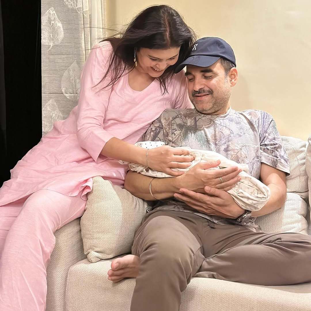 The photo, which quickly gathered admiration from fans and followers, showcases Pankaj Tripathi cradling Paritosh’s newborn daughter in his arms. Dressed casually in a colorful T-shirt and pants, the ever-genuine Pankaj radiates warmth as he smiles down at the baby. Beside him sits Mridula Tripathi, glowing in a soft pink suit, her hand gently placed around the little one. Her laughter reflects the joy of the moment, and the affection shared between the trio is unmistakable.