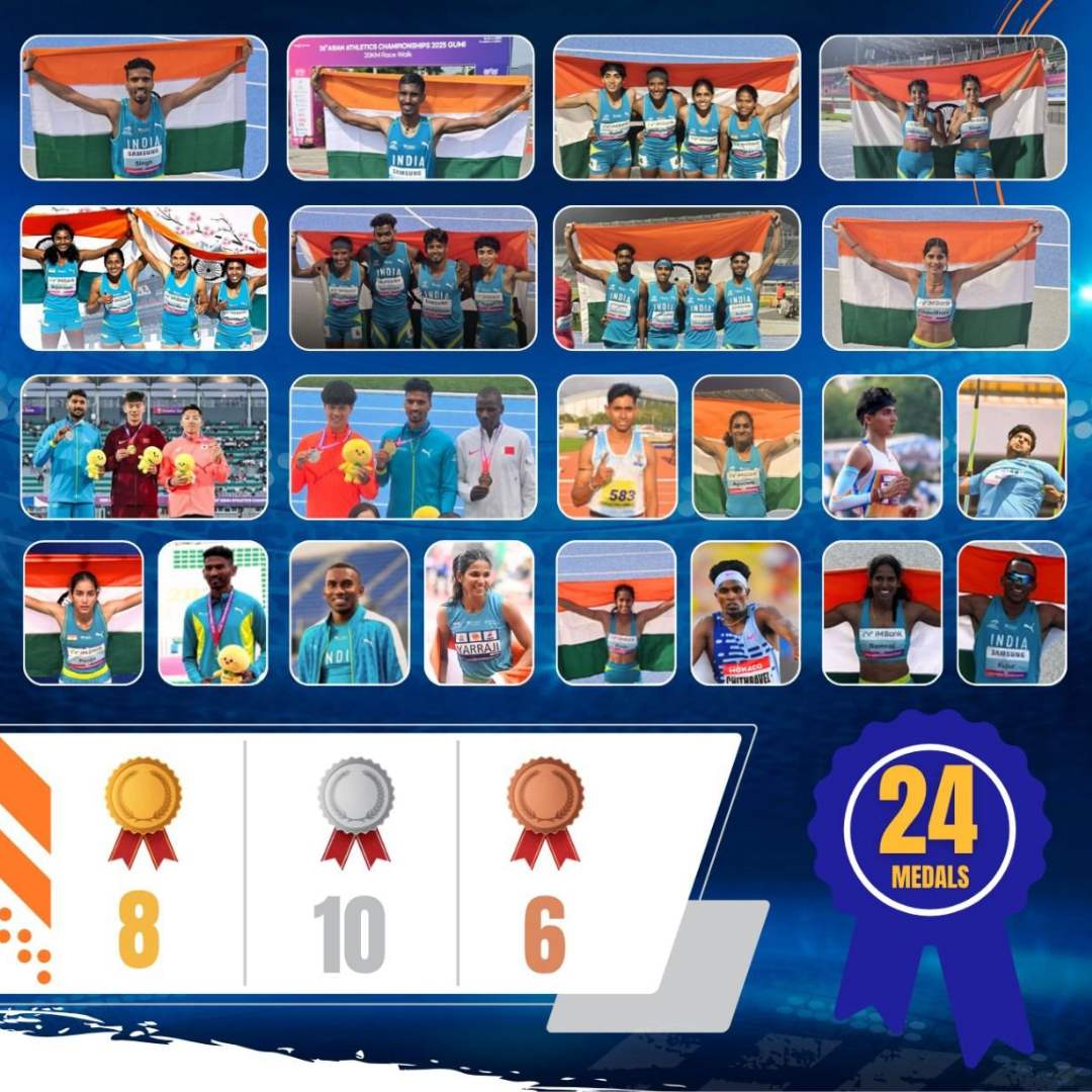 “India is proud of our contingent for their stupendous performance at the recently held 2025 Asian Athletics Championships in South Korea. The hardwork and determination of every athlete were clearly visible throughout the tournament. Best wishes to the athletes for their future endeavours.”