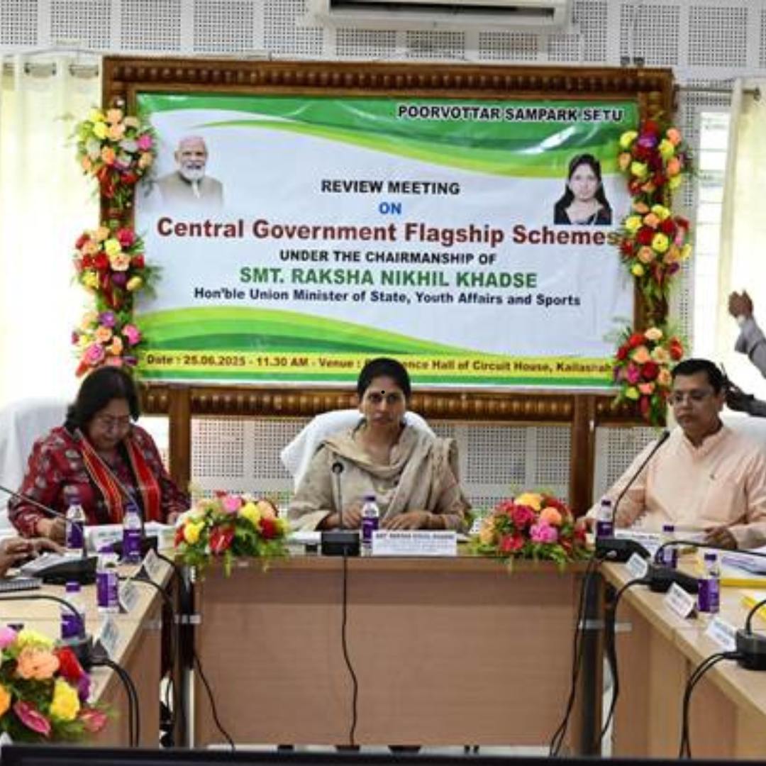 In a major step toward driving development in India’s North Eastern region, Union Minister of State for Youth Affairs and Sports, Smt. Raksha Nikhil Khadse, concluded a high-level review meeting in Unakoti District, Tripura. This engagement forms a key part of her official visit under the ambitious ‘Poorvottar Sampark Setu’ initiative—an outreach programme guided by Hon’ble Prime Minister Narendra Modi’s vision to accelerate the implementation of Central Flagship Schemes, foster stronger Centre-State collaboration, and address region-specific developmental challenges.