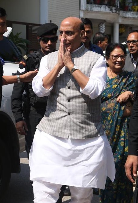 Rajnath Singh, the Defence Minister of India, cast his vote in the Lucknow Municipal Corporation elections.
